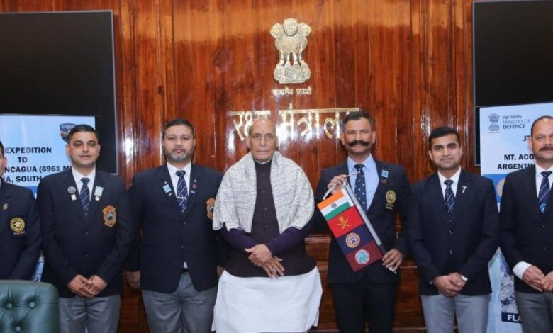 नई दिल्ली। भारतीय पर्वतारोहियों की एक टीम अर्जेंटीना की ऊंची चोटी ‘माउंट एकांकागुआ’ पर चढ़ाई करेगी। रक्षा मंत्री राजनाथ सिंह ने गुरुवार को साउथ ब्लॉक (रक्षा मंत्रालय) से भारतीय पर्वतारोहण टीम को रवाना किया।