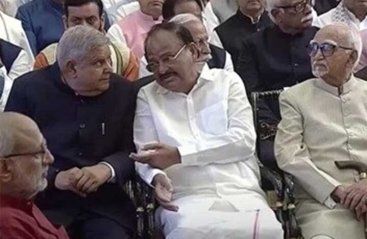 इस्तीफे के बाद पहली बार नजर आए जगदीप धनखड़, नए VP राधाकृष्णन की शपथ में पहुंचे
