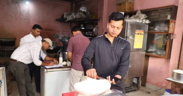 कार्रवाई के दौरान खाद्य एवं औषधि प्रशासन की अभिहित अधिकारी सुधा चौधरी, वरिष्ठ खाद्य सुरक्षा अधिकारी नेमीचंद पटेल और नमूना सहायक सुमन अग्रवाल उपस्थित रहीं।