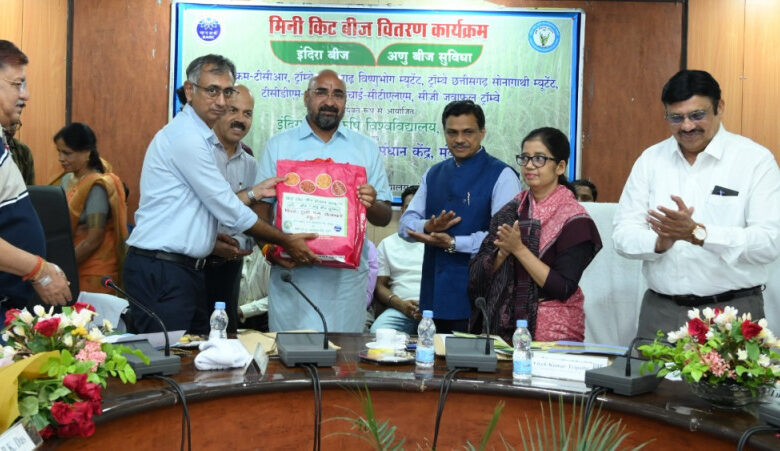 किसानों को कृषि विश्वविद्यालय द्वारा विकसित म्यूटेंट धान बीज के मिनी किट का वितरण