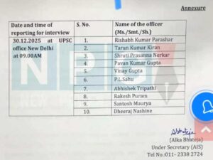 उल्लेखनीय हैं कि लगभग 30 अधिकारियों ने आवेदन किया था उनमें से 10 नाम upsc को भेजे हैं जिनका 30 दिसंबर 2025 को धौलपुर हाउस, दिल्ली में साक्षात्कार होना है। ये तीन अधिकारी हैं धीरज नशीने, श्रुति प्रसन्ना नेरकर, ऋषभ पराशर । ये तीनों अधिकारी आवेदन के योग्य भी नहीं थे जिनको IAS बनाने की तैयारी चल रही हैं। अज़ीम खान ने आरोप लगाते हुए कहा कि वर्तमान सरकार पारदर्शिता के नाम पर ही सत्ता में आई थी ,जिस प्रकार पिछली सरकार के psc घोटाले को उजागर करके सत्ता में आई थी उस साय सरकार से यही उम्मीद थी कि इनके शासन में भर्तियां में पारदर्शिता आयेगी । लेकिन इस वर्तमान प्रक्रिया से ये तथ्य धूमिल होता है ।