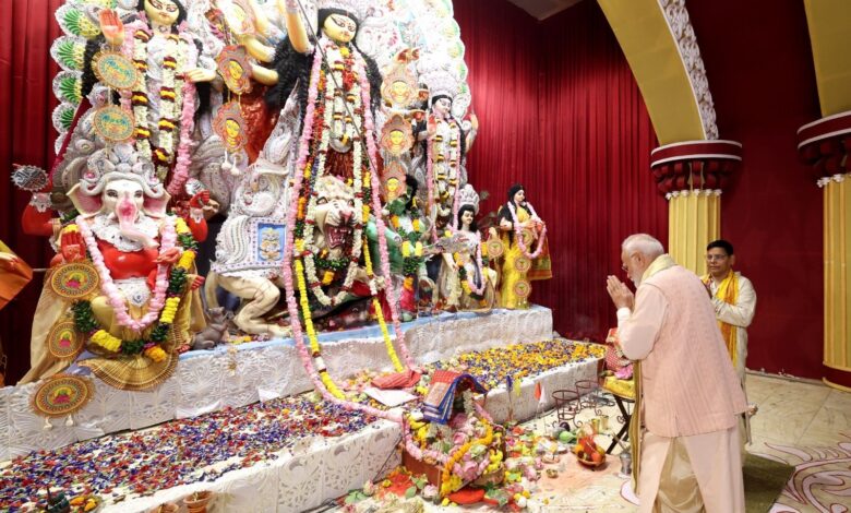 पीएम मोदी ने सीआर पार्क और काली बाड़ी मंदिर में की पूजा-अर्चना