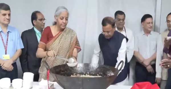नई दिल्ली। केंद्रीय बजट पेश होने से पहले वित्त मंत्रालय में हर साल की तरह इस बार भी हलवा सेरेमनी का आयोजन किया गया। यह समारोह नॉर्थ ब्लॉक के बेसमेंट में केंद्रीय वित्त मंत्री की मौजूदगी में संपन्न हुआ।