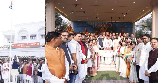 भारतीय गणतंत्र की 77वीं वर्षगाँठ पर  प्रदेश अध्यक्ष देव ने भाजपा कार्यालय में फहराया तिरंगा