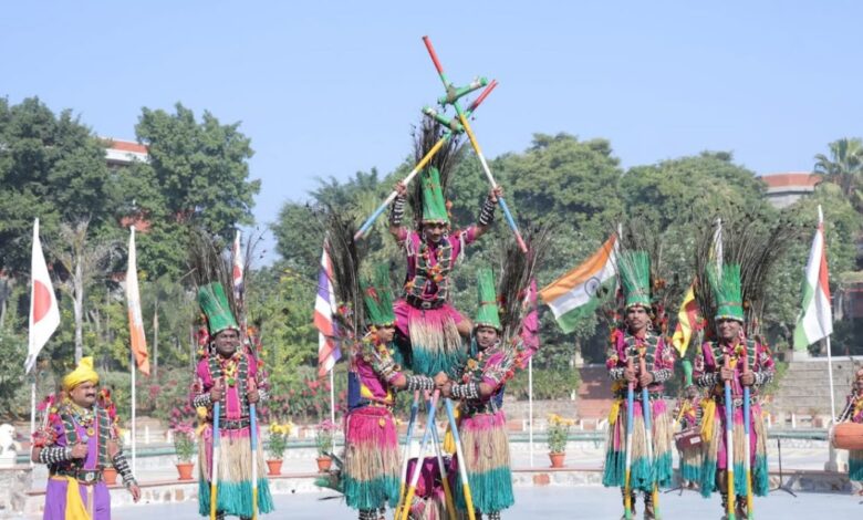 गेड़ी नृत्य दल ने अपने रोमांचक प्रदर्शन से अंतर्राष्ट्रीय दर्शकों को रोमांचित कर दिया