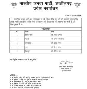 कुल मिलाकर, भाजपा अनुसूचित जाति मोर्चा की यह नई टीम छत्तीसगढ़ की राजनीति में संगठन और समाज के बीच संवाद को मजबूत करने की कोशिश के रूप में देखी जा रही है—जहां पंकज जगत राजधानी से नेतृत्व करते हुए प्रदेशभर में नई संगठनात्मक धारा को आगे बढ़ाने की भूमिका निभाने की तैयारी में हैं।