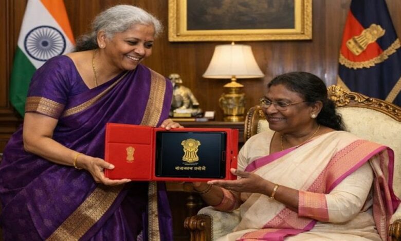 राष्ट्रपति द्रौपदी मुर्मु से मिलीं वित्त मंत्री निर्मला सीतारमण, और उन्हें लाल ‘डिजिटल बही-खाता’ दिखाया