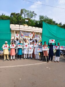 राजधानी रायपुर में मुस्लिम समाज रायपुर छत्तीसगढ़ के द्वारा अम्बेडर चौक में एक दिवस प्रदर्शन मुस्लिम समाज के द्वारा किया गया ।